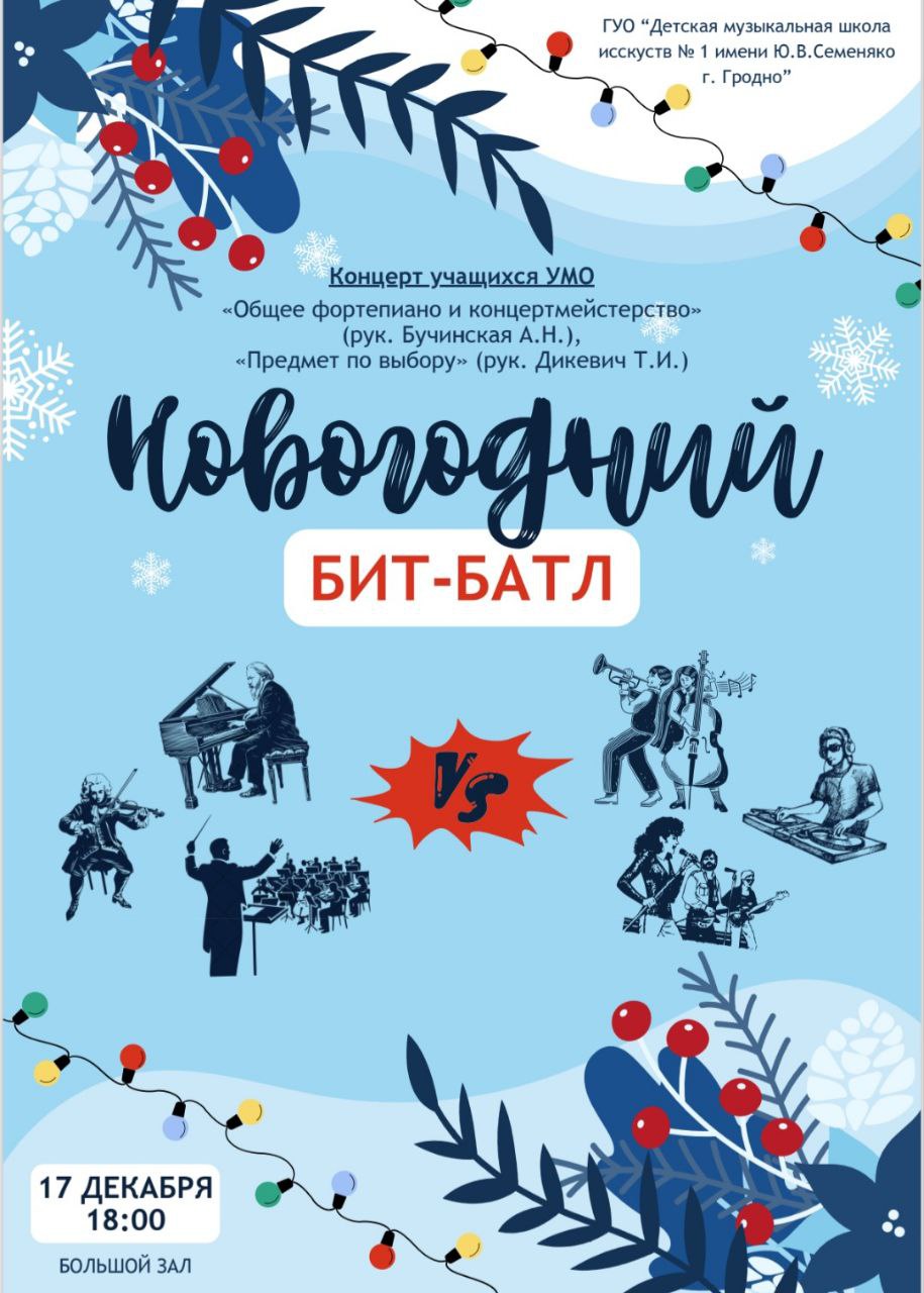 15.12.2025Музыкальная школа с радостью сообщает о проведении череды новогодних концертов, которые пройдут на разных учебно-методических объединениях! Приглашаем вас окунуться в атмосферу праздника и насладиться волшебными звуками новогодних мелодий в исполнении наших талантливых учеников.